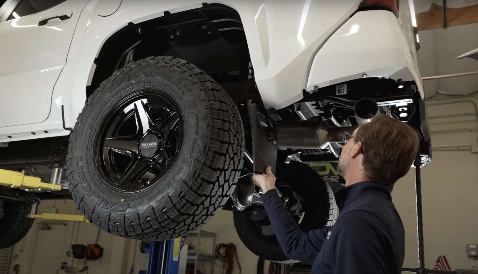 Brandon: Yes. With the zero offset, it does help the wheels stick out a little bit to prevent any kind of rubbing that may have occurred on the backside. We probably didn't have to go quite this aggressive, but with the unknowns of the new Tacoma we wanted to be more safe than sorry.Looking back here on the suspension side, you do have some room to be able to run a tighter offset wheel if you wanted to.