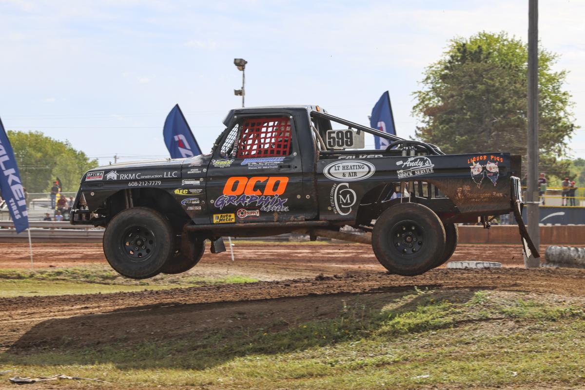 Finally, Troy Ringelstetter of Poynette, WI, running a Ford in the Stock Truck race, and finishing fourth place in Round 1, came back strong in Round 2, starting on the pole. He maintained the lead for the duration of the race, but got caught up in turn 3 toward the end, dropping to fourth. Determined to get to the podium, he made a pass to 3rd on the final lap and took the position to the finish.